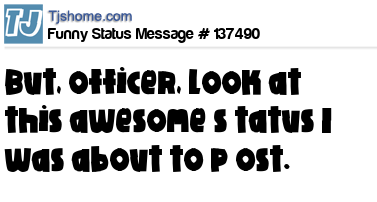 X says But, officer, look at this awesome s tatus I was about to p ost.