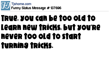 X says True, you can be too old to learn new tricks, but you're never too old to start  turning tricks.