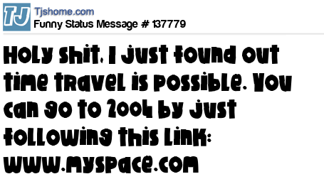X says Holy shit, I just found out time travel is possible. You can go to 2004 by just following this link: www.myspace.com