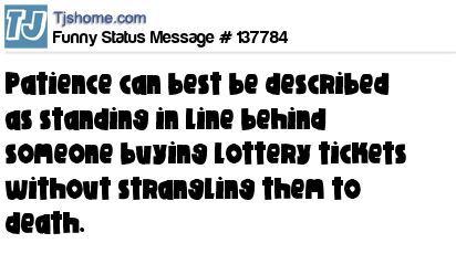 X says Patience can best be described as standing in line behind someone buying lottery tickets without strangling them to death.