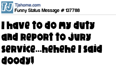 X says I have to do my duty and report to jury service...hehehe I said doody!