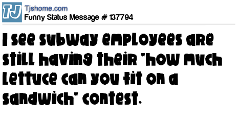 X says I see subway employees are still having their "how much lettuce can you fit on a sandwich" contest.