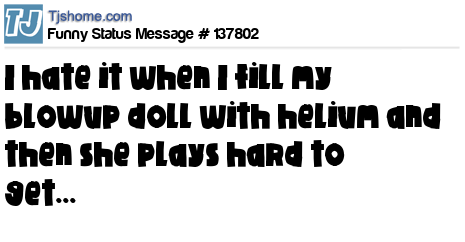 - # 52638 Sometimes I fill up my blow up doll with helium so its playing hard to get.