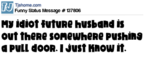 X says My idiot future husband is out there somewhere pushing a pull door. I just know it.