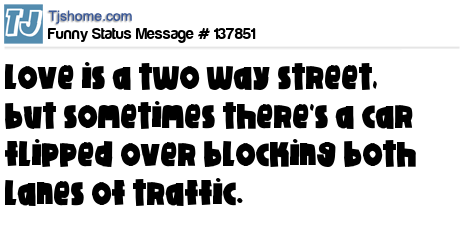 X says Love is a two way street, but sometimes there's a car flipped over blocking both lanes of traffic.