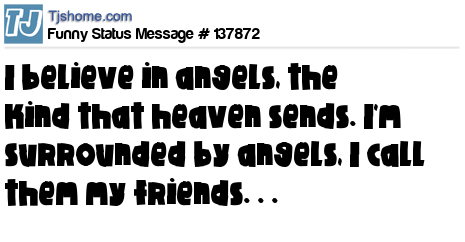 - # 25266 I believe in angels, The kind that heaven sends, I am surrounded by angels, But I call them friends.