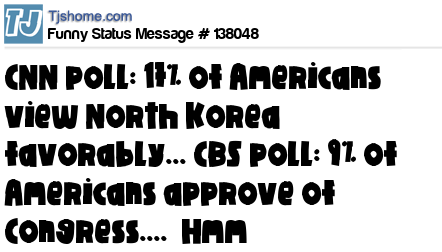 X CNN poll: 17% of Americans view North Korea favorably... CBS poll: 9% of Americans approve of Congress.... Hmm