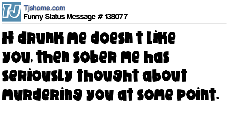 X says If drunk me doesn’t like you, then sober me has seriously thought about murdering you at some point.