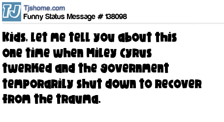 X says Kids, let me tell you about this one time when Miley Cyrus twerked and the government temporarily shut down to recover from the trauma.