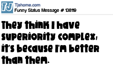 - # 204519 I have an inferiority complex about my superiority complex. I know I’m better than you, but I feel really bad about it.