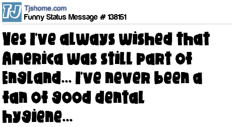 X says Yes I've always wished that America was still part of England... I've never been a fan of good dental hygiene...