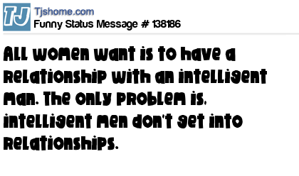 - # 147586 All women want is to have a relationship with an intelligent man. The only problem is, intelligent men don’t get into relationships.