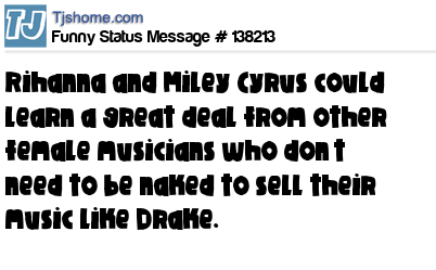 - # 138356 Rihanna and Miley Cyrus could learn a great deal from other female musicians who don’t need to be naked to sell their music like Justin Bieber!