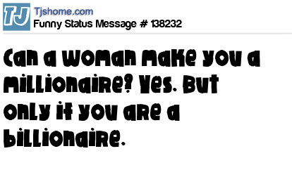 X says Can a woman make you a millionaire? Yes. But only if you are a billionaire.