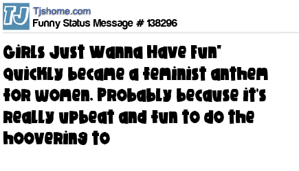 X Girls Just Wanna Have Fun" quickly became a feminist anthem for women. Probably because it's really upbeat and fun to do the hoovering to