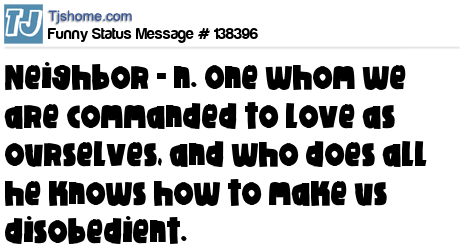X Neighbor - n. One whom we are commanded to love as ourselves, and who does all he knows how to make us disobedient.
