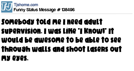 X Somebody told me I need adult supervision. I was like "I Know!" It would be awesome to be able to see through walls and shoot lasers out my eyes.