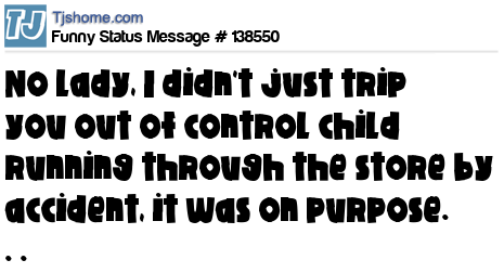 X says No lady, I didn't just trip you out of control child running through the store by accident, it was on purpose. . .