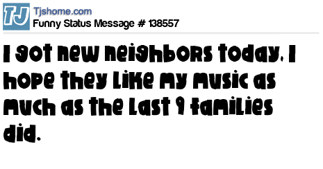 X says I got new neighbors today, I hope they like my music as much as the last 9 families did.