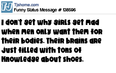X says I don't get why girls get mad when men only want them for their bodies. Their brains are just filled with tons of knowledge about shoes.