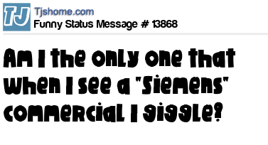 X Am I the only one that when I see a "Siemens" commercial I giggle?