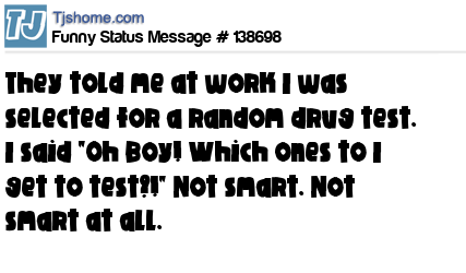 X says They told me at work I was selected for a random drug test. I said "Oh Boy! Which ones to I get to test?!" Not smart. Not smart at all.