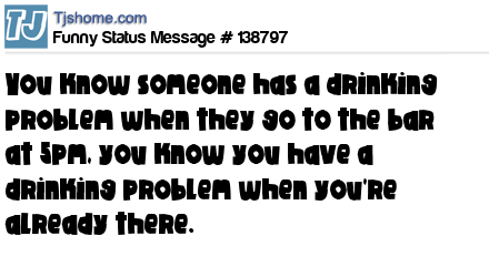 X says You know someone has a drinking problem when they go to the bar at 5pm, you know you have a drinking problem when you're already there.