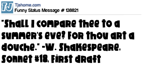 - # 186721 "Shall I compare thee to a Summer's Eve? For thou art a Douche." -Rejected Shakespeare line.