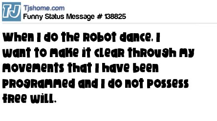 X When I do the robot dance, I want to make it clear through my movements that I have been programmed and I do not possess free will.