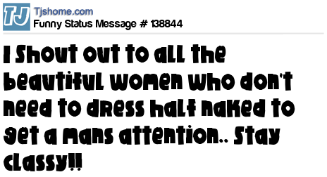 - # 133448 A Shout Out to all the beautiful women who don't need to dress half nekked to get a man's attention. Stay classy! The rest of you, come with me.