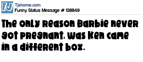 X says The only reason Barbie never got pregnant, was Ken came in a different box.