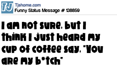 X says I am not sure, but I think I just heard my cup of coffee say, "You are my b*tch"