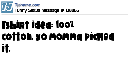 X says tshirt idea: 100% cotton, yo momma picked it.