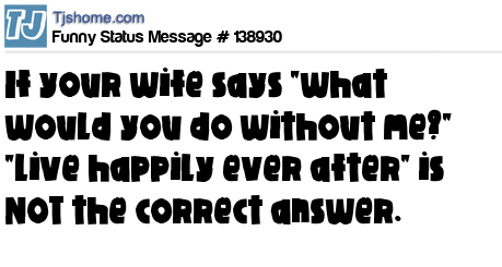 - # 164772 If you wife asks what would you do without me? "Live happily ever after," is not the correct answer.
