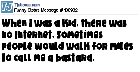 X When I was a kid, there was no Internet. Sometimes people would walk for miles to call me a bastard.