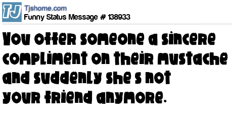 - # 72271 Jeeze! You offer someone a sincere compliment on their mustache and suddenly she's not your friend anymore! FML!