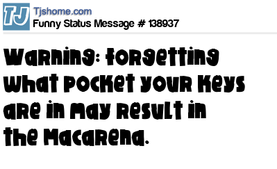 X says Warning: forgetting what pocket your keys are in may result in the Macarena.