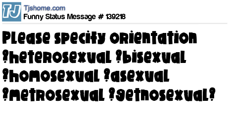 X  Please specify orientation ?heterosexual ?bisexual ?homosexual ?asexual ?metrosexual ?getnosexual?