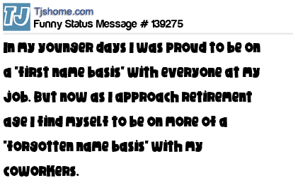 X In my younger days I was proud to be on a "first name basis" with everyone at my job. But now as I approach retirement age I find myself to be on more of a "forgotten name basis" with my coworkers.