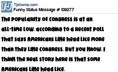 X says The popularity of Congress is at an all-time low, according to a recent poll that says Americans like head lice more than they like Congress. But you know, I think the real story here is that some Americans like head lice.