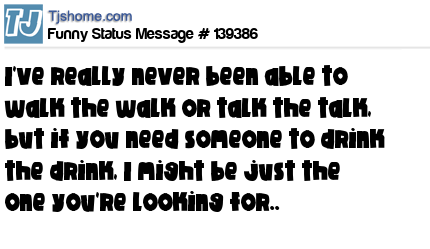 - # 199344 I can't really Walk the Walk or Talk the Talk, but if you need someone to Drink the Drink then I'm your guy.