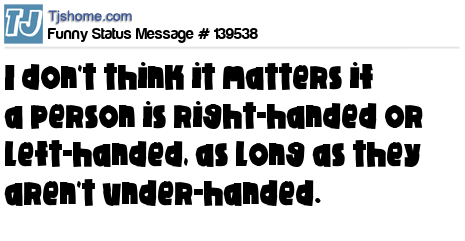 X I don't think it matters if a person is right-handed or left-handed, as long as they aren't under-handed.