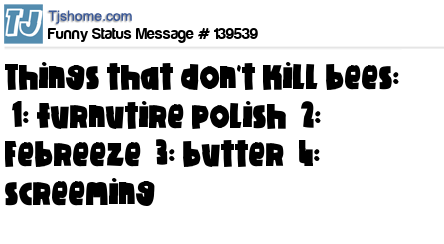 - # 142920 Things that don't kill bees: 1: furnutire polish 2: Febreeze 3: butter 4: screeming