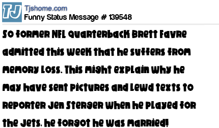 X says So former NFL quarterback Brett Favre admitted this week that he suffers from memory loss. This might explain why he may have sent pictures and lewd texts to reporter Jen Sterger when he played for the Jets, he forgot he was married!