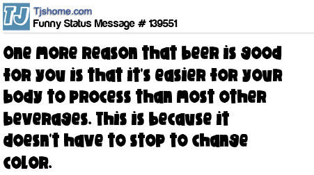 X One more reason that beer is good for you is that it's easier for your body to process than most other beverages. This is because it doesn't have to stop to change color.