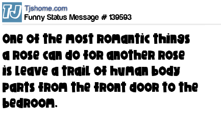 X says One of the most romantic things a rose can do for another rose is leave a trail of human body parts from the front door to the bedroom.