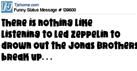 X says There is nothing like listening to Led Zeppelin to drown out the Jonas Brothers break up. . .