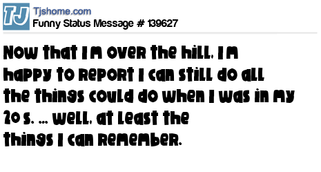 X Now that I’m over the hill, I’m happy to report I can still do all the things could do when I was in my 20’s. … well, at least the things I can remember.