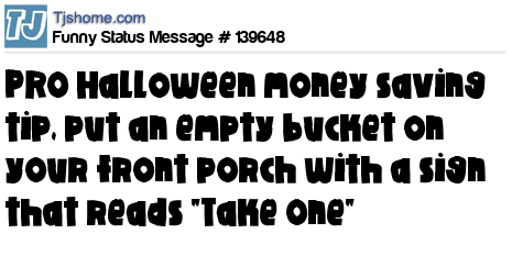 - # 77661 How to save money on Halloween candy, set a empty bowel on the front porch and write a nice note that says please only take one piece of candy, that way everyone can have some.