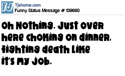 X says Oh Nothing. Just over here choking on dinner, fighting death like it's my job.